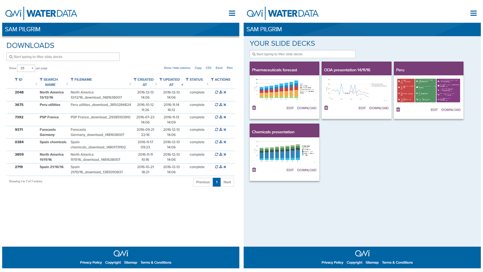 Your own project space: your library of dataset downloads, favourite content and an area for building slide decks that you can download into PowerPoint.