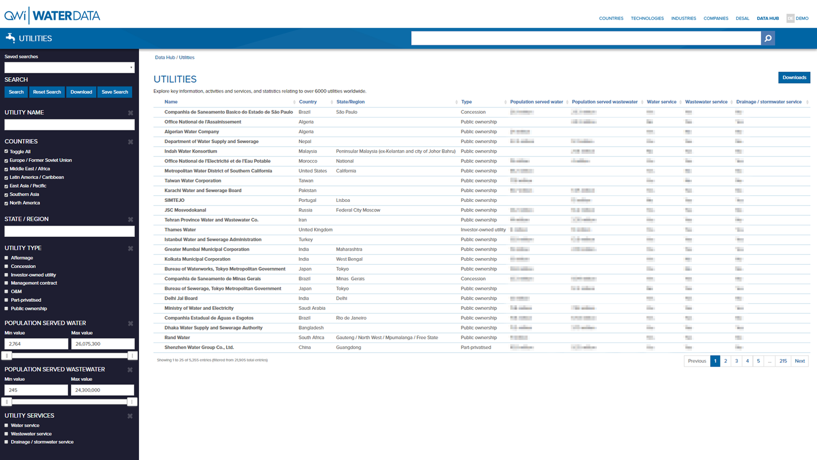 The Data Hub is the ultimate data centre, including extensive datasets produced by GWI and external sources, letting you explore utilities, mergers and acquisitions, plants, the water tariff survey, as well as the market forecasts that support the graphs and charts within WaterData.